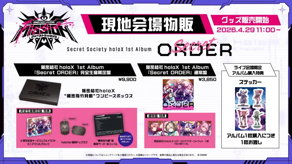 秘密結社holoX Live 2026「First MISSION」にてライブグッズ・アルバムの会場販売が決定しました!